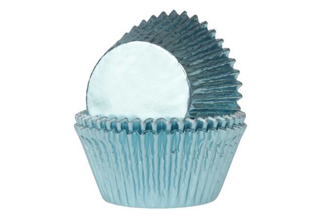 Papírové košíčky na muffiny potažené světle modrou folií vhodné na pečení. prečítať celé
