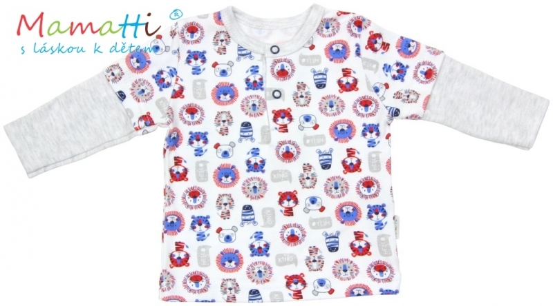 Polo tričko dlouhý rukáv Mamatti - LION - šedý melírek/potisk lion, vel. 80; 80 (9-12m)