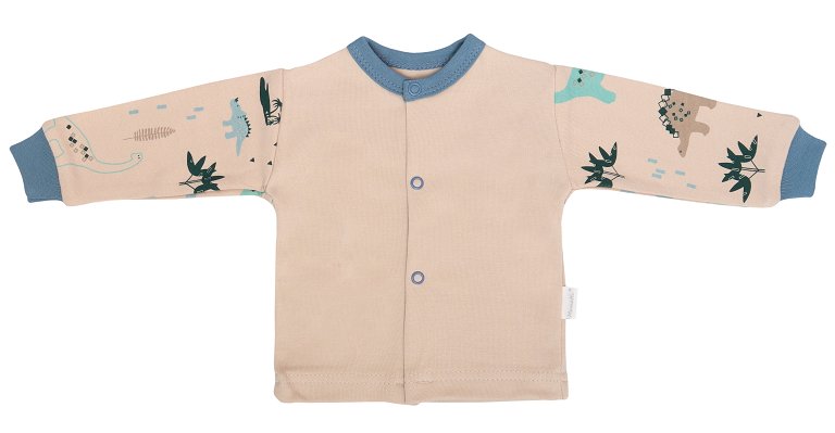 Mamatti Novozenecká bavlněná košilka, kabátek, Dinosaurus - krémová s potiskem, vel. 68