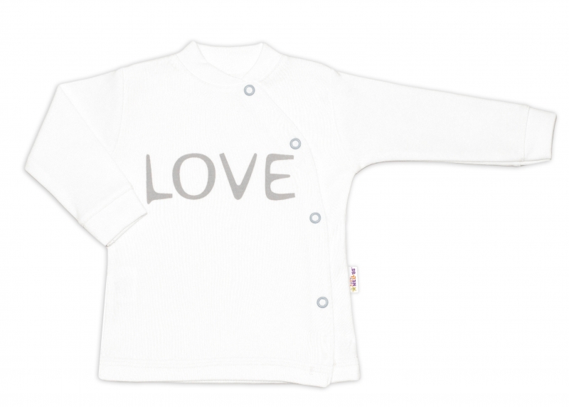 Bavlněná košilka Love zapínaní bokem.Materiál: 100% bavlna.Detailní rozměry:Vel. 50 délka 22,5 cm, šířka 19 cm x 2, délka rukávku od krčku 20 cm. Vel. 56 délka 24,5 cm, šířka 20 cm x 2, délka rukávku od krčku 22 cm. Vel. 62 délka 26,5 cm, šířka 21 cm x 2, délka rukávku od krčku 23 cm. Vel. 68...