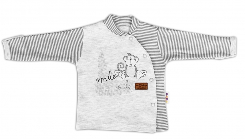 Bavlněná košilka Monkey zapínaní bokem.Materiál: 100% bavlna.Detailní rozměry:Vel. 56 délka 24,5 cm, šířka 20 cm x 2, délka rukávku od krčku 22 cm. Vel. 62 délka 26,5 cm, šířka 21 cm x 2, délka rukávku od krčku 23 cm. Vel. 68 délka 27,5 cm, šířka 22 cm x 2, délka rukávku od krčku 26 cm. Uvedené...