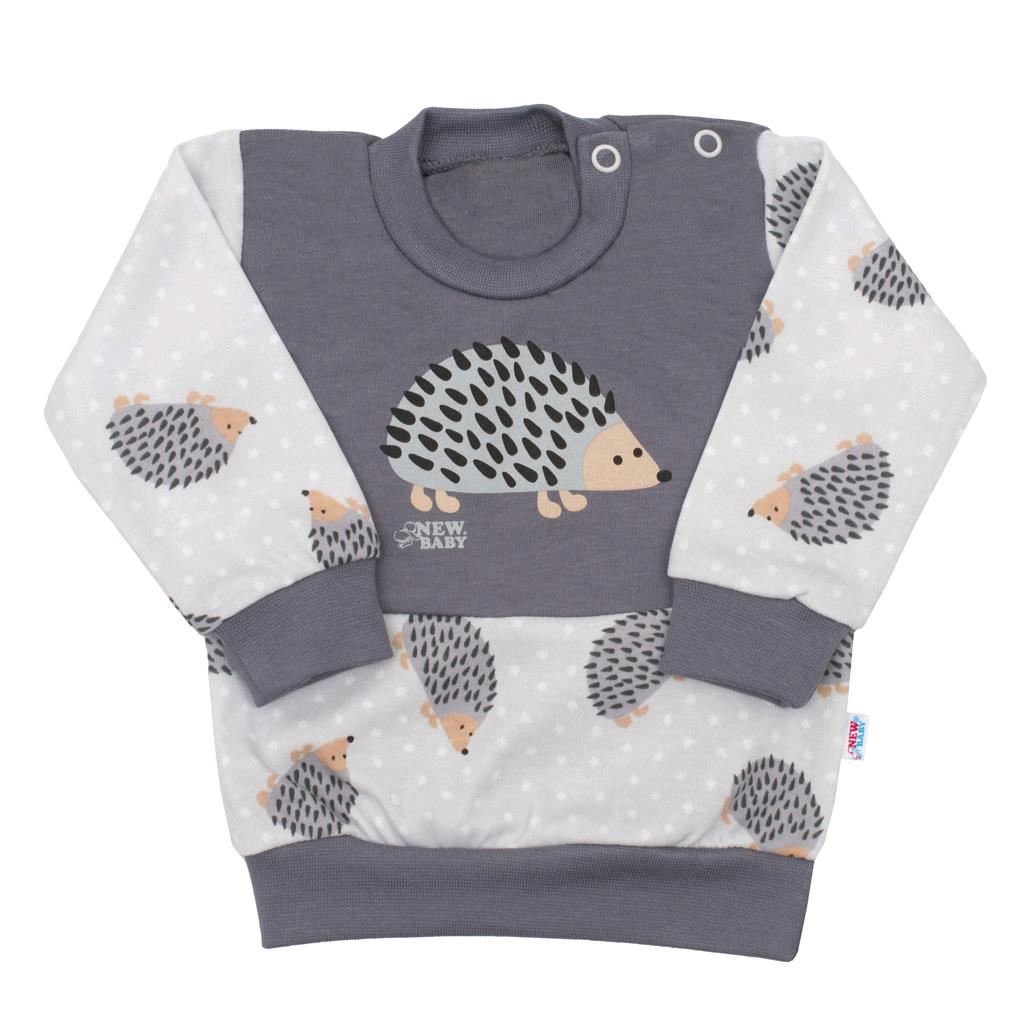 Bavlněná kojenecká mikinka české značky New Baby Ježek pro miminka. Mikinka má rukávky a spodní část potištěné malými ježečky. Vrchní část mikinky zdobí velký obrázek roztomilého ježka a je ukončena širokým lemem. Praktické zapínání na ramínku na cvočky. Nápaditá a cool, přesně taková je naše...