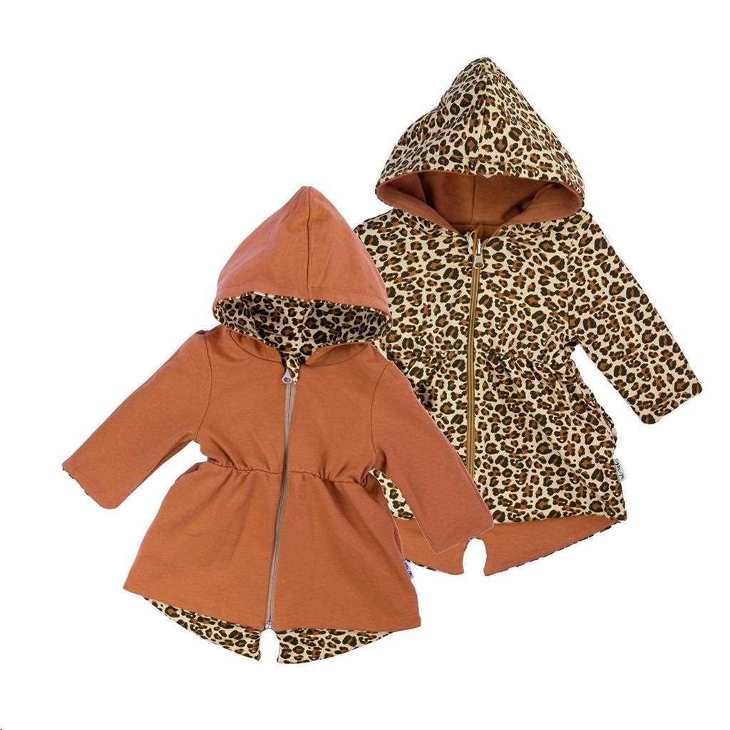 Oboustranná kojenecká mikinka s kapucí Nicol Mia. Mikinka má zapínání na zip po celé délce, zadní strana je prodložená a v pase je mírně tvarovaná a stažená. Zip je u krčku zakrytý, což je velmi praktické a pohodlné. Kapuci zdobí podšívka se vzorem leopardí srsti v případe že je mikinka hnědá. V...