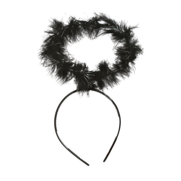 Andělská svatozář - černá. Proměňte se ve zlobivého anděla pomocí černé svatozáře na čelence, jednoduše jí schováte do vlasů nebo paruky. Vhodná na jakoukoliv tematickou party. Hodí se jako doplněk ke kostýmu ale i na halloweenskou party nebo karneval.