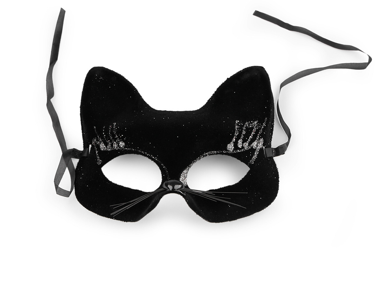 Karnevalová maska - škraboška sametová s glitry kočka - 1 ks - 1 černá stříbrná