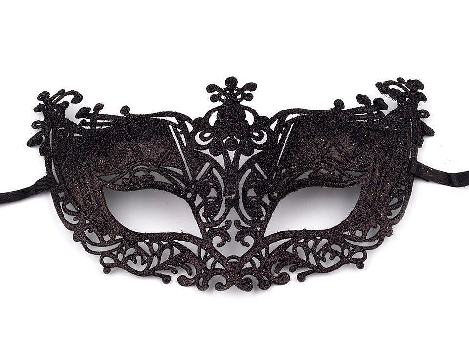 Karnevalová maska - škraboška s glitry - 1 ks - 5 černá
