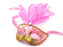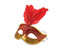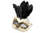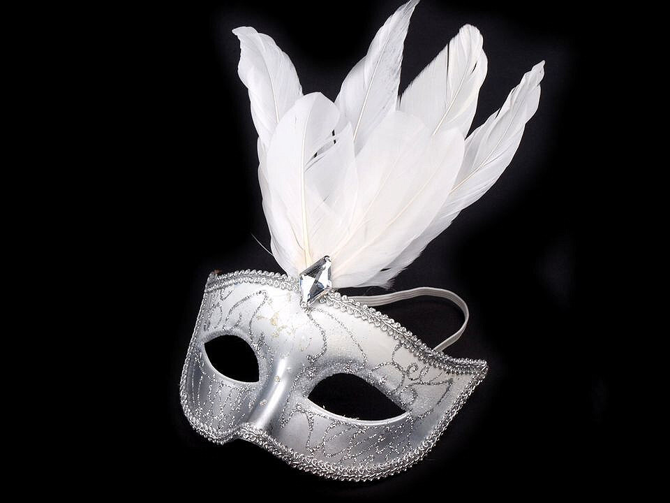 Okouzlující karnevalová maska. Je ozdobena peřím a broušeným plastovým kamenem ve tvaru kosodélníku. Kvalitní plast, ze kterého je maska vyrobena, je poset glitry. Barva glitrů odpovídá barvě peří. Každá maska je navíc ozdobena motivy z glitrů zlaté nebo stříbrné barvy. Masku přichytíte pomocí pruženky. Ať už si vyberete jakoukoliv, věřte, že budete na večírku zářit.