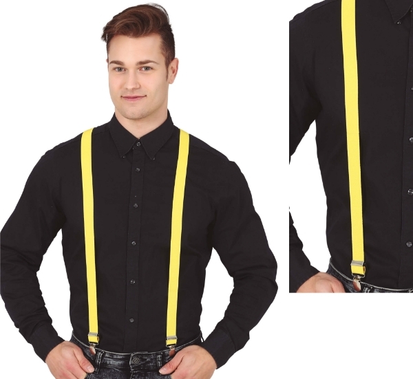 Žluté kšandy (šle) vhodné jako univerzální doplněk nejen ke kostýmu na tematickou párty, letní oslavu nebo kostýmu tanečníka. Skvěle se hodí i na běžné nošení, nebo jako doplněk pro číšníky a barmany. Stačí doplnit stylovou košilí a je hotovo.