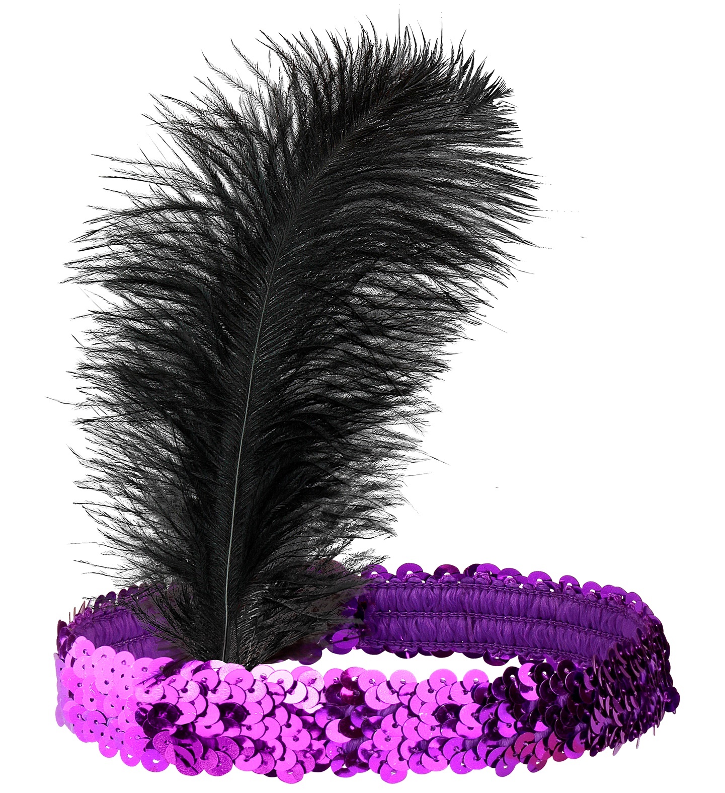 Čelenka Charleston flitrová s pérem, doplněk v retro stylu od firmy Widmann, pružná. Materiál: 100% polyester Barva: fialová prečítať celé