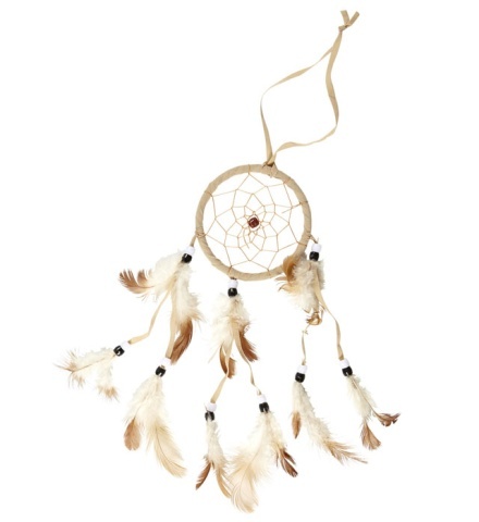 Indiánský lapač snů, s korálky a peříčky se stužkou na pověšení. Délka včetně poutka: 45 cm Průměr lapače: 9cm prečítať celé