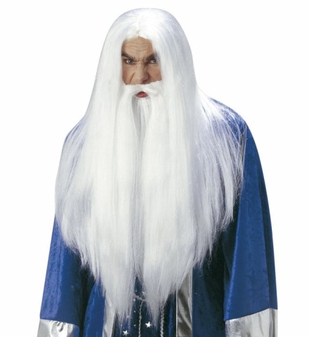 Karnevalová paruka čaroděje s vousy. Vousy se uchytí gumičkou za uši. Barva: bílá Určeno pro: pánská Typ paruky: dlouhá, rovná Materiál: 100% polyester prečítať celé
