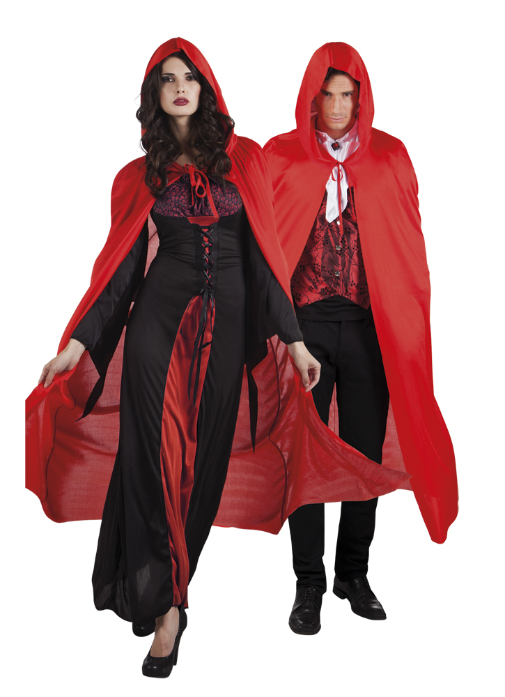 Červený látkový plášť s kapucí. Elegantní plášť pro tajuplný převlek. Materiál: 100% polyester Délka: 180 cm Délka od ramen dolů: cca 136cm Barva: červená prečítať celé