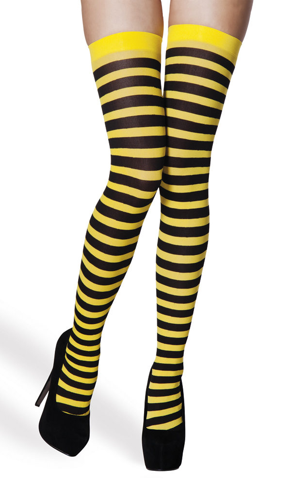 Doplňte svůj včelí outfit těmito veselými žluto/černými pruhovanými punčochami. Včelí vzhled má během karnevalu, nebo párty vždy úspěch!