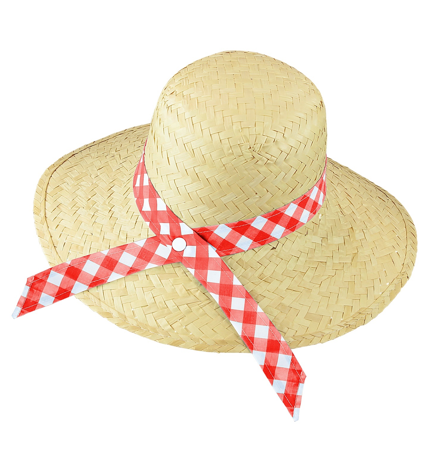 Slaměný klobouk dámský s červenou stuhou. Obvod hlavy: 55 cm Materiál: 100% palmové listy prečítať celé