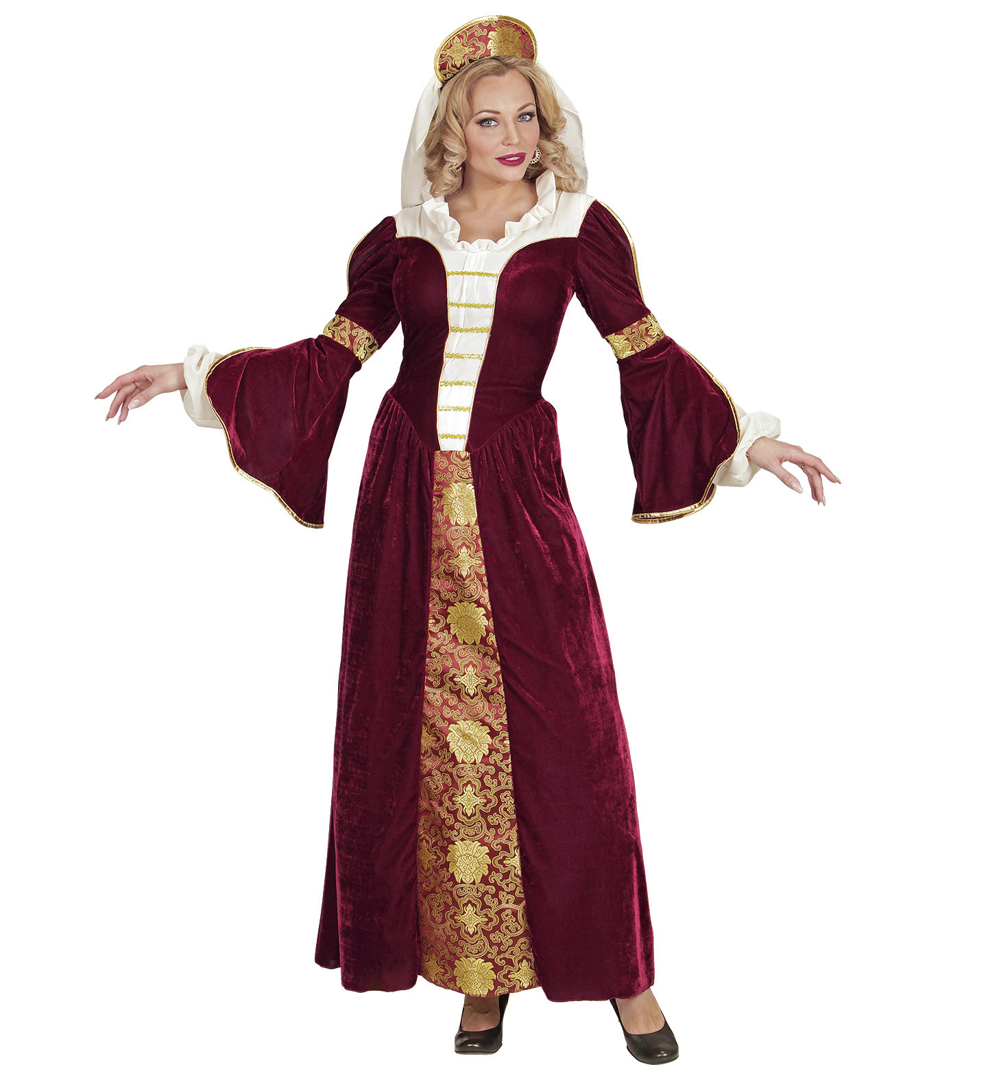 Kostým středověké královny Kostým obsahuje: šaty, spodnička, pokrývka hlavy se závojem Velikost: XL Materiál: 100% polyester prečítať celé