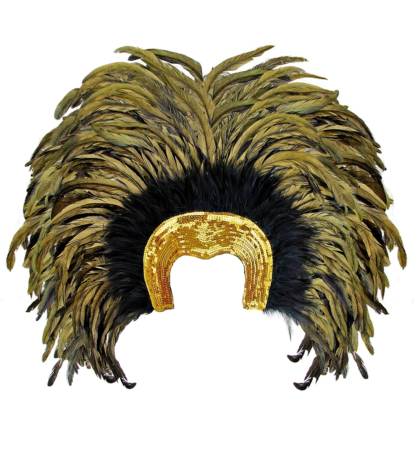 Flitrová čelenka s peřím, Rio. Uchycení gumou, velice stabilní. Barva: zlatá Materiál: 80% peří, 15% PVC, 5% polyester prečítať celé