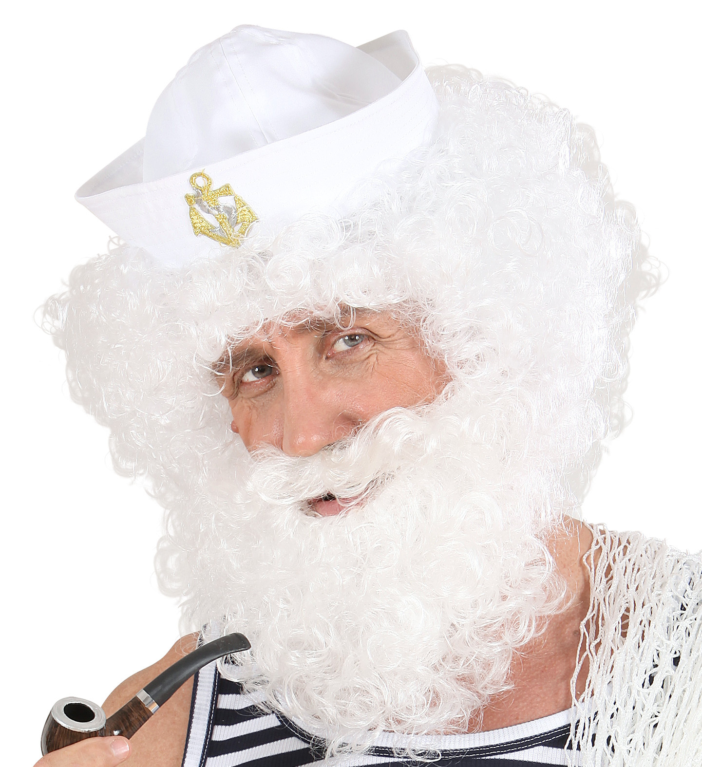 Karnevalová paruka a vousy. Vousy se uchytí gumičkou za uši. Doplněk k převleku kapitána, Mikuláše.. Barva: bílá Určeno pro: pánská Typ paruky: kudrnatá Materiál: 100% polyester prečítať celé