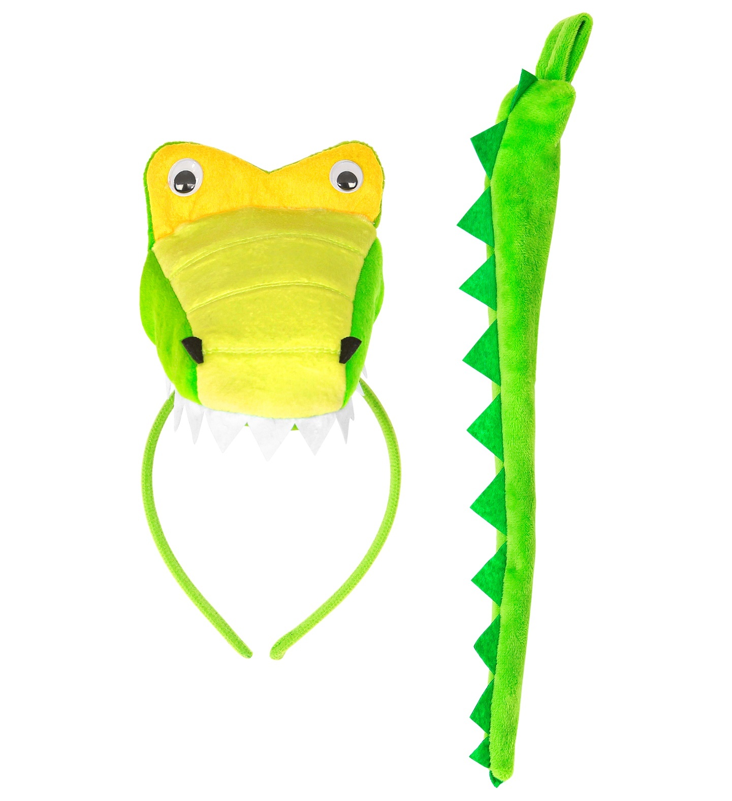 Souprava krokodýl obsahuje čelenku a ocásek. Materiál: 100% polyester  Velikost: univerzální prečítať celé