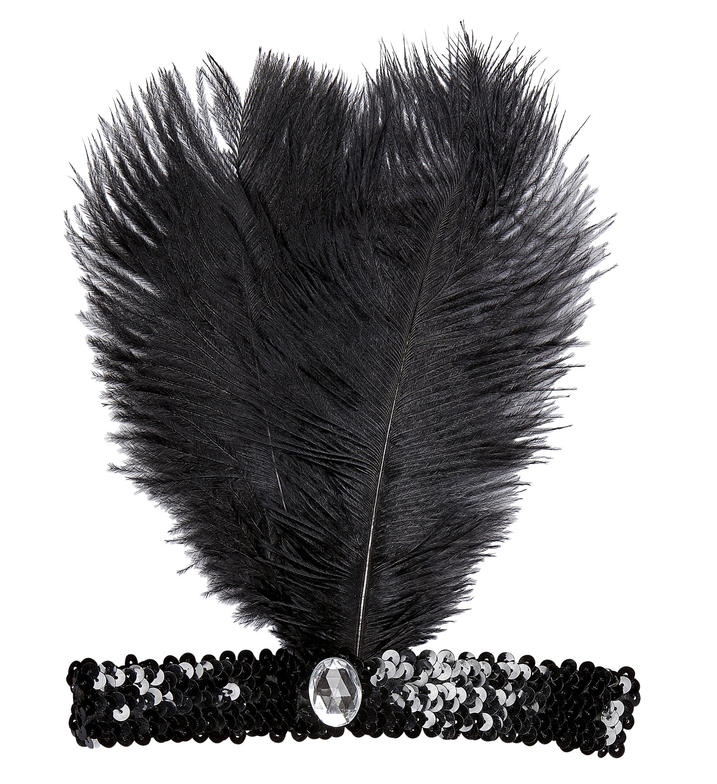 Černá flitrová čelenka s peřím a kamínkem, 20´léta Materiál: 45% peří, 45% polyester, 10% PP Barva: černá prečítať celé