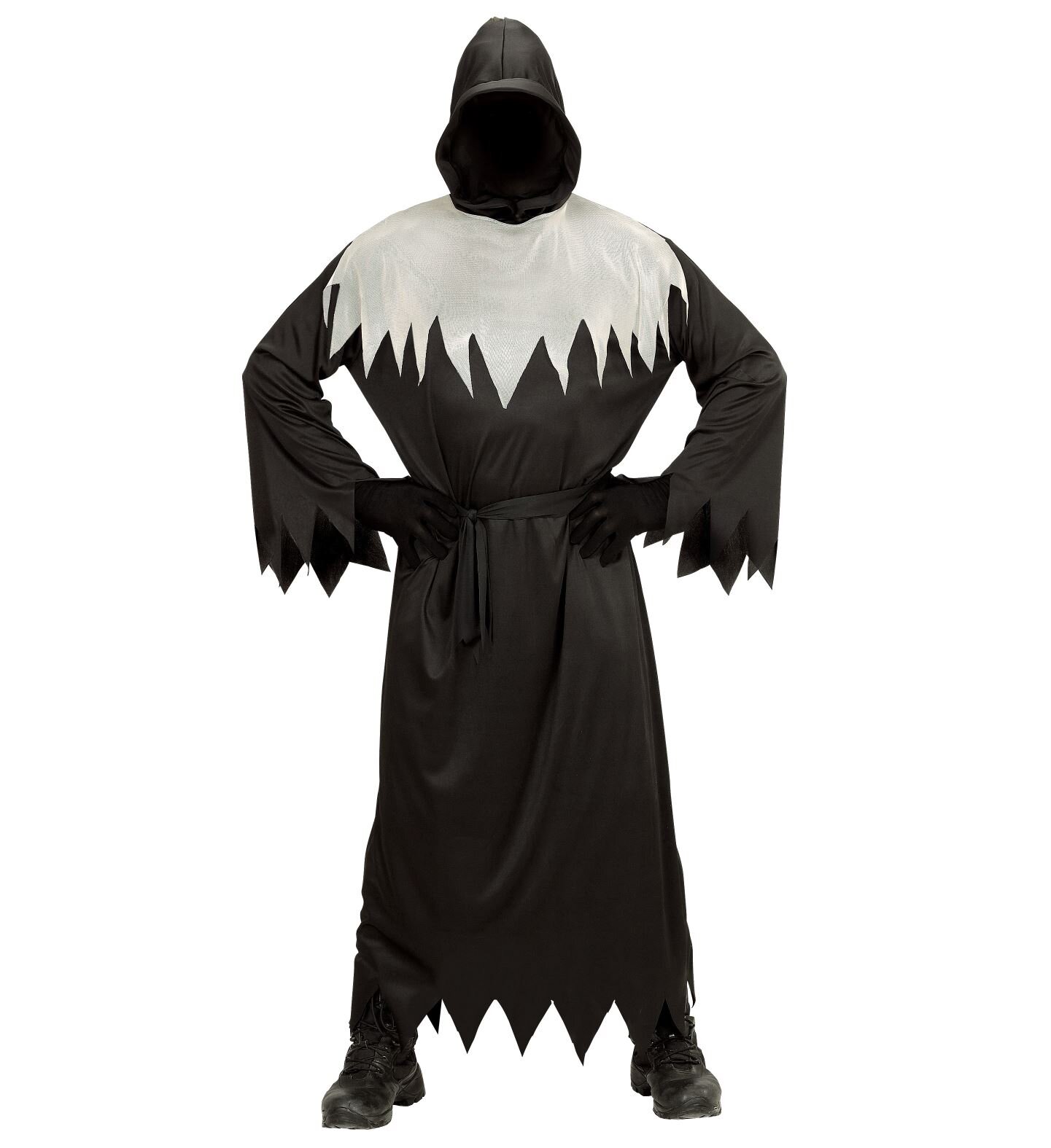 Karnevalový kostým Zlý démon / Smrťák. Velikost: 14-16 let Materiál: 100% polyester Kostým obsahuje: šaty s kapucí, pásek,masku s neviditelnýma očima. prečítať celé
