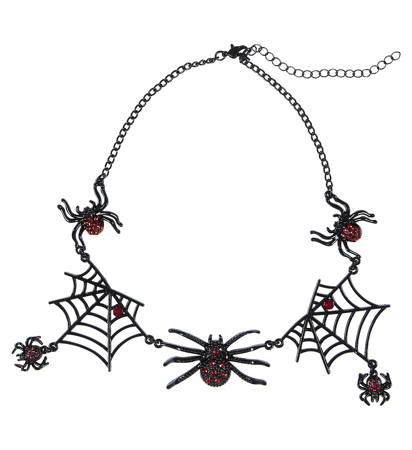 Náhrdelník s pavuky a pavučinkou, s kamínky, doplněk k čarodějnickému kostýmu. Materiál:  70% zinek, 25% ocel, 5% Pmma prečítať celé