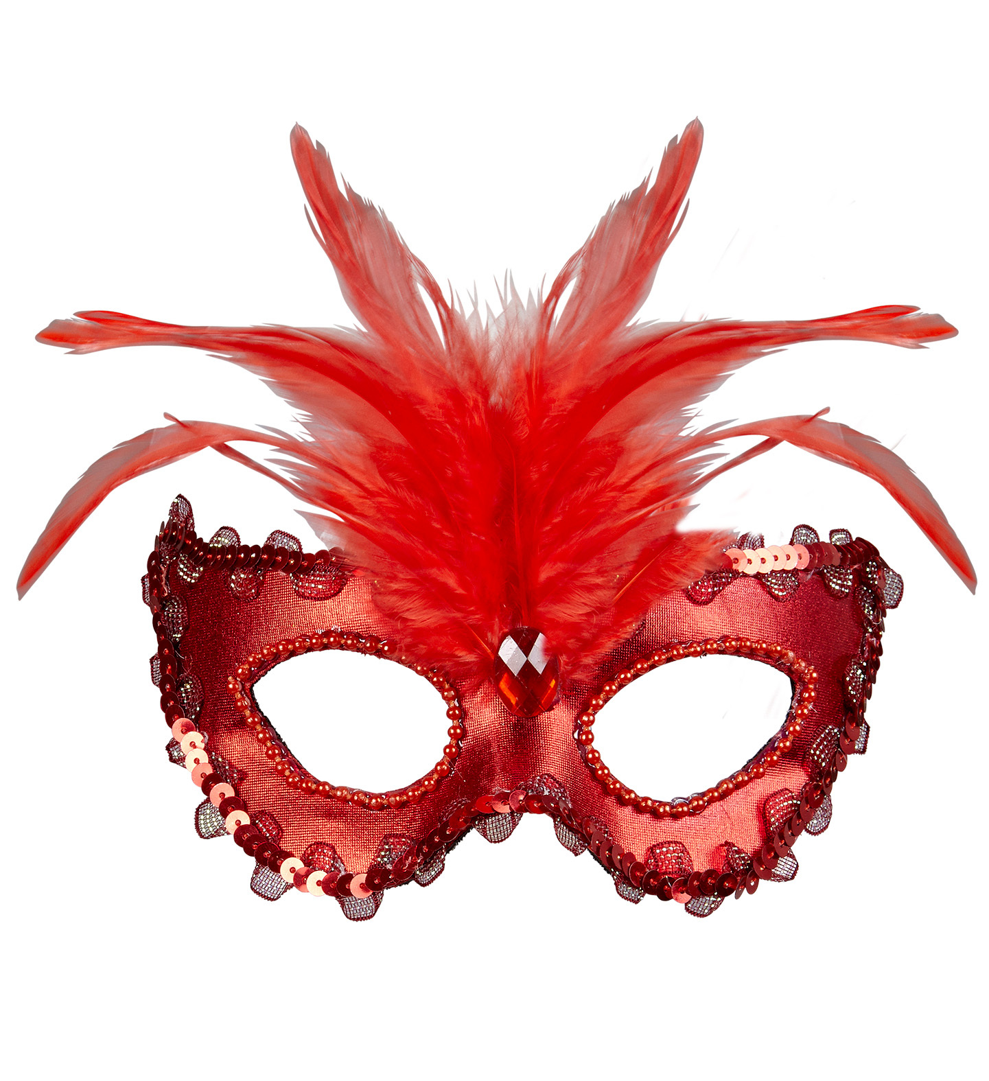 Metalická karnevalová škraboška s krajkou, kamínkem a peříčky. Uchycení na gumičku. Materiál: 100% polyester Barva: červená prečítať celé