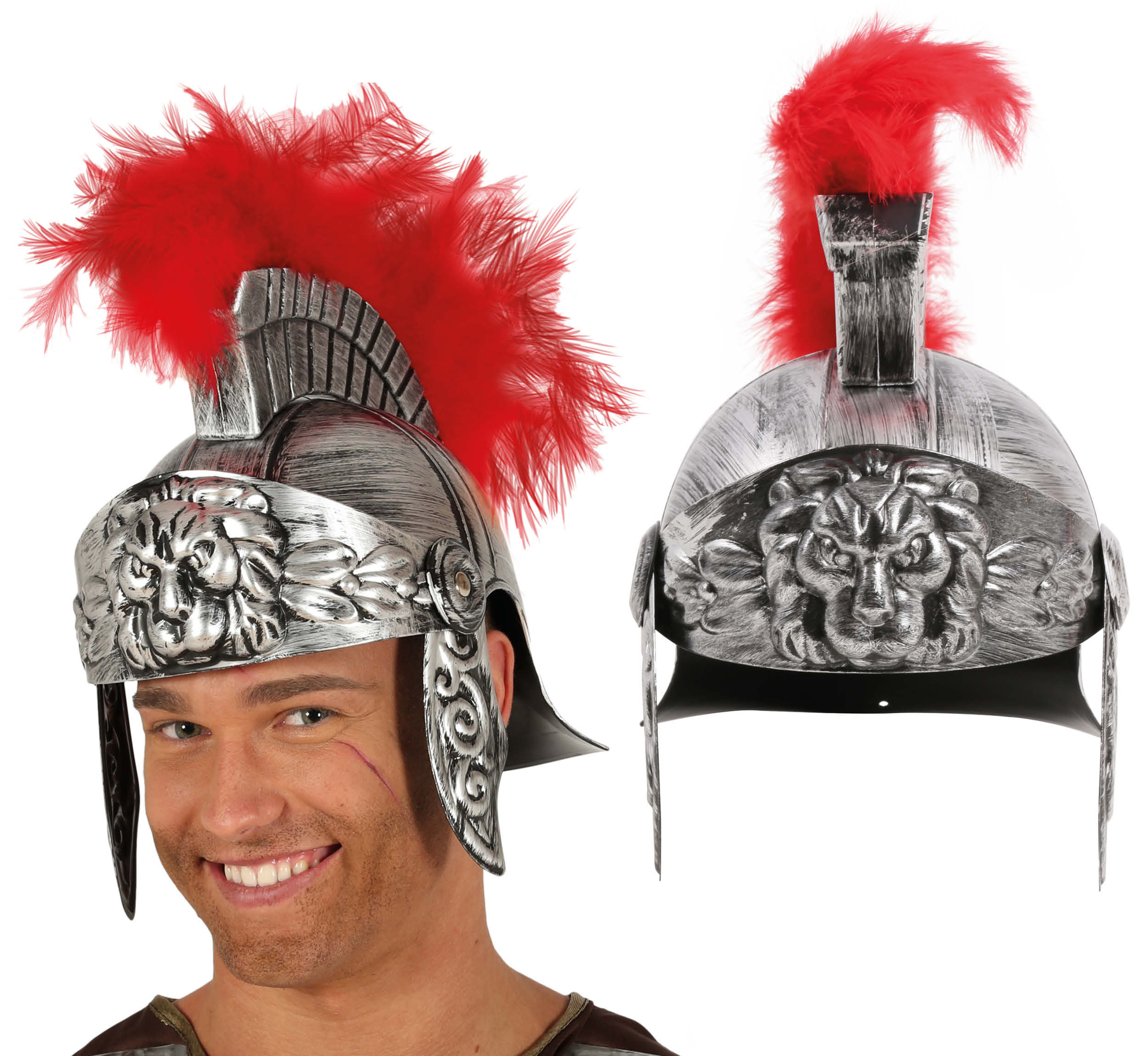 Římská stříbrná helma s červeným chocholem, tvrdý plast. Románská historická helma vojáka z vrcholného období římské říše. Materiál: PE, polyester Velikost: Dospělá prečítať celé