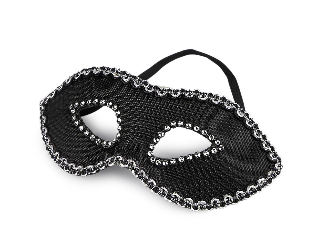 Karnevalová maska - škraboška s kamínky - 1 ks - 2 černá