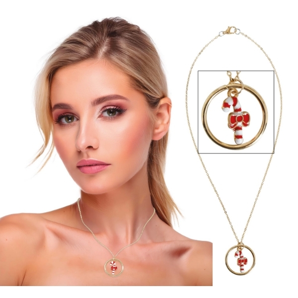 Vánoční náhrdelník se sladkou hůlkou v kruhu – zlatý