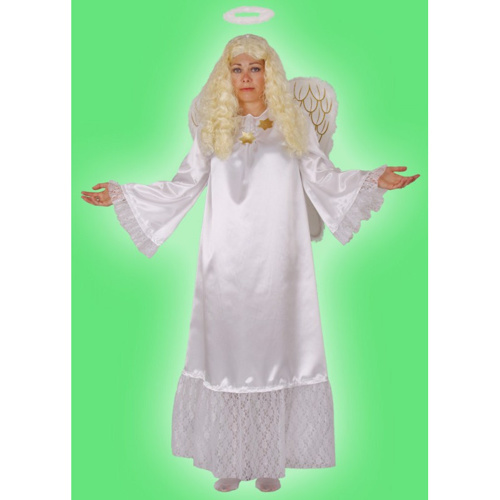 Materiál: Kostým Anděl je vyroben z materiálu polyesterový satén v bílé barvě a doplněný zlatým opaskem.