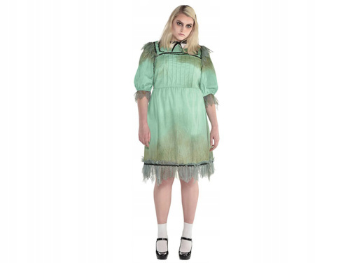 Kostým obsahuje dlouhé šaty, čelenka s velkou mašlí, punčochy a rukavice a maska na obličej. Boty nejsou součástí balení.