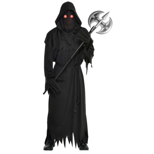 Kostým obsahuje dlouhé šaty s kápí, rukavice a maska se svítícíma očima. Boty a sekera nejsou součástí balení.