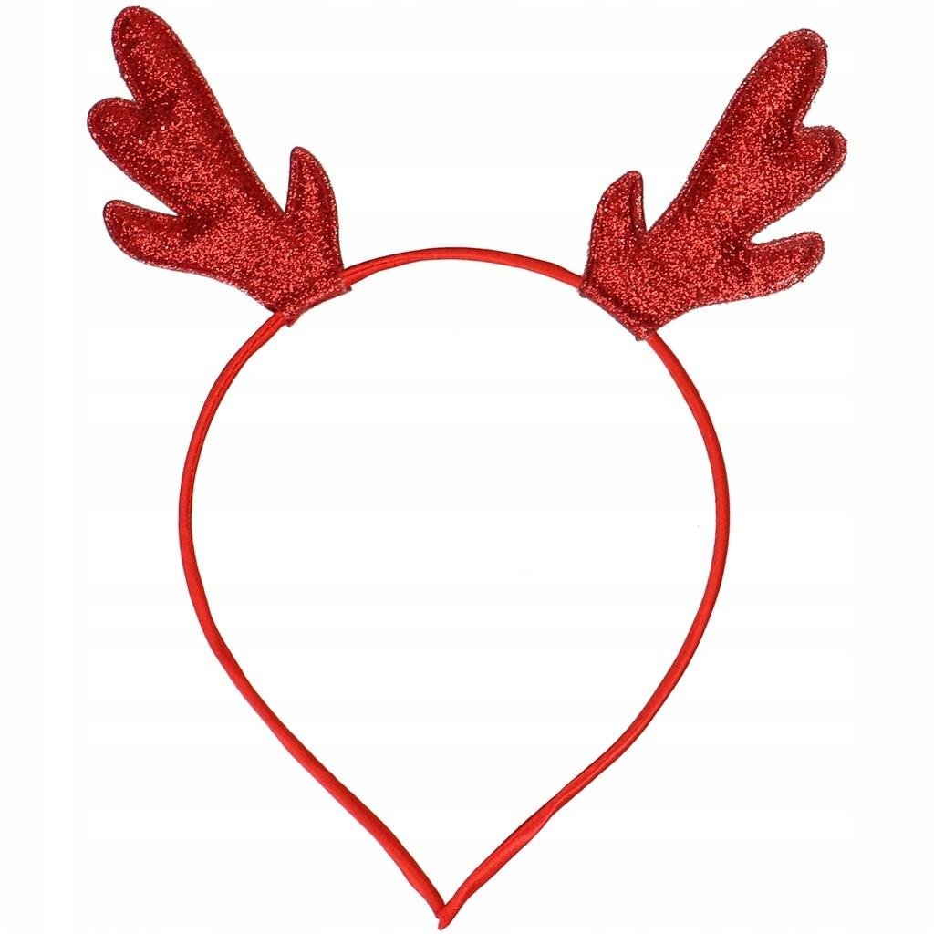 Świąteczna opaska z rogami renifera. Ozdobiona pięknymi rogami wykończone brokatowym materiałem. Sama opaska pokryta tkaniną.