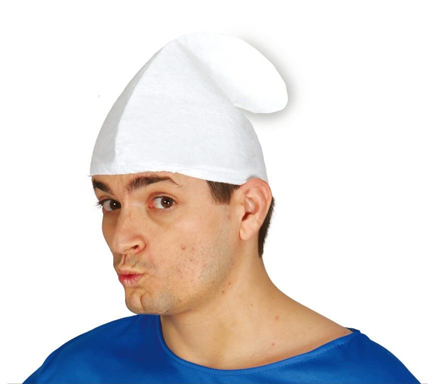 - Biela čiapka v štýle Šmolkov.