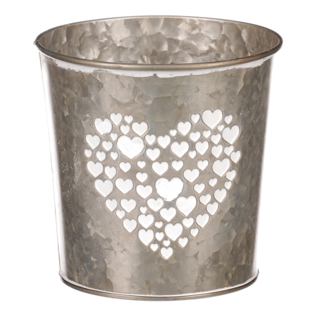 Obal z kovu na květiny, v tmavě krémové barvě se srdcem.