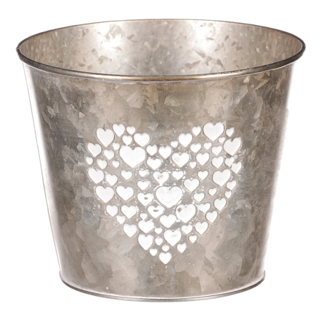 Obal z kovu na květiny, v tmavě krémové barvě se srdcem.
