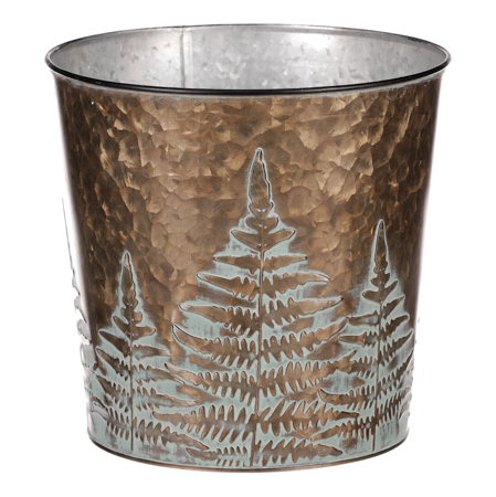 Obal z kovu na květiny, v měděné barvě s kapradím.