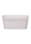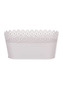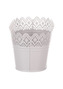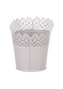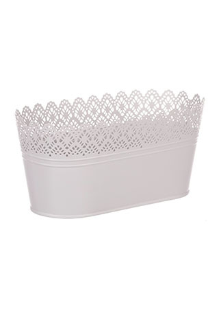 Truhlík kovový, krajkový okraj, šedivá barva.
