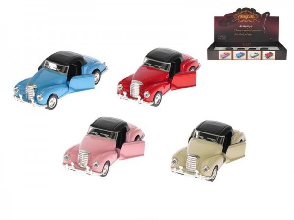 Auto veterán kov 13cm zpětný chod asst 4 barvy 12ks v boxu