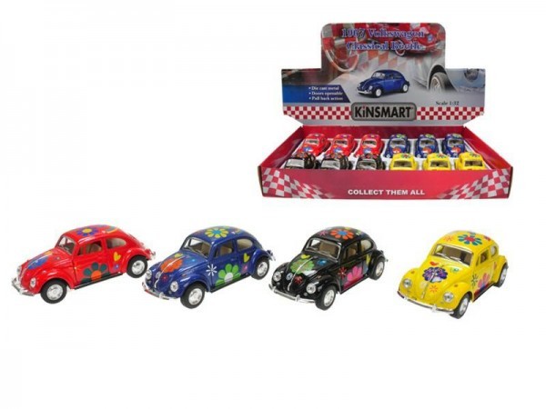 Auto Kinsmart VW Beetle hippies brouk kov 13cm na zpětné natažení asst 4 barvy