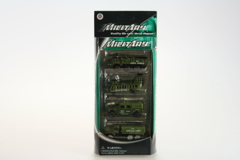 Vojenské auta v sadě 4 druhy o velikosti cca 7cm. Auta jsou částečně z kovu. Věk 3 prečítať celé