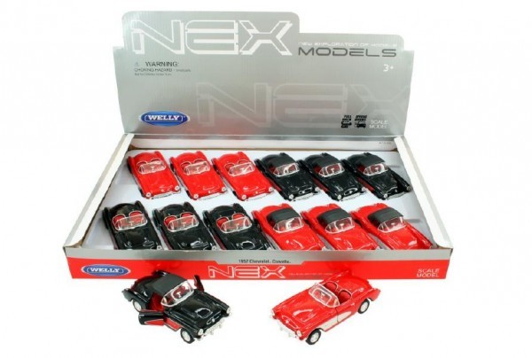 Auto WELLY Chevrolet 57 Corvette kov 12cm na zpětné natažení asst 4 druhy 12 ks v boxu