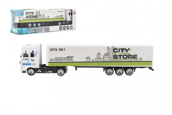Kamión s návesom 19cm kov/plast na voľný chod 4 farby v krabičke 20x6x4cm
