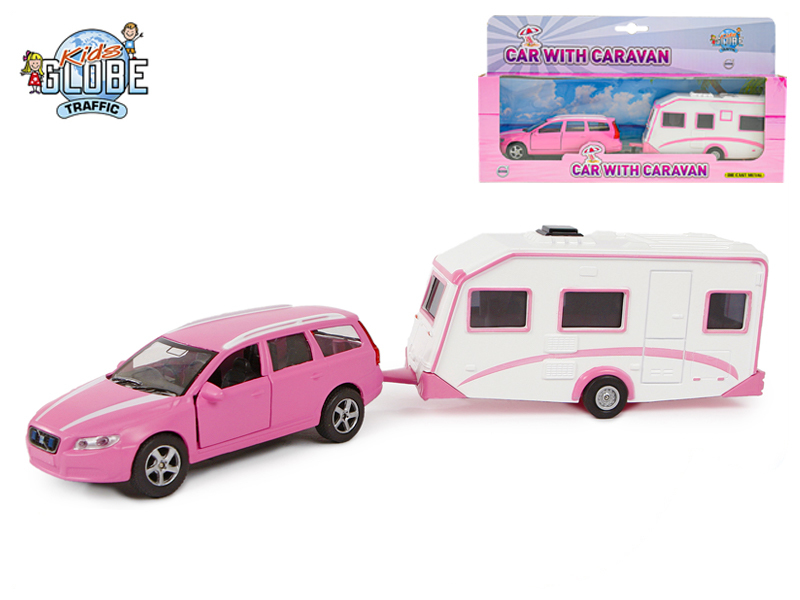 Kovový model autíčka Volvo V70 včetně karavanu o velikosti 30 cm. Auto i karavan jsou zbarveny do růžova. Auto je na zpětný chod. Přední dveře má otevíratelné. prečítať celé