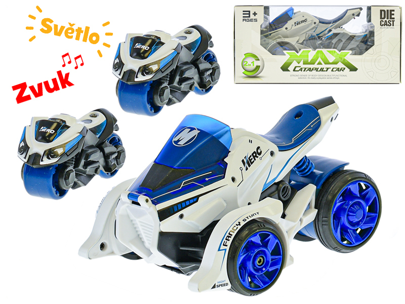 Auto katapult 18cm kov na zpětný chod na baterie se světlem a zvukem + 2ks motorka v krabičce