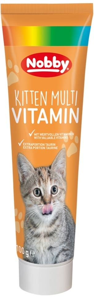 Doplněk stravy pro koťata Nobby Multivitamínová pasta v balení 100g Nobby Multivitamínová pasta s cenným taurinem a vitamíny je ideální jako každodenní doplněk stravy vaší kočky. Zajišťuje optimální přísun živin. optimální přísun živin - vitamínů a taurinu vhodné iv případě vitamínové...