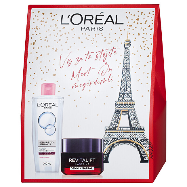 Dárková sada L´Oréal Paris Revitalift potěší každou ženu, která ráda pečuje o svou zralou pleť. Balení obsahuje denní krém Revitalift Laser X3 a micelární vodu . Revitalift Laser denní krém redukuje vrásky, zpevňuje pleť a remodeluje kontury. Obsahuje fragmentovanou kyselinu hyaluronovou a...