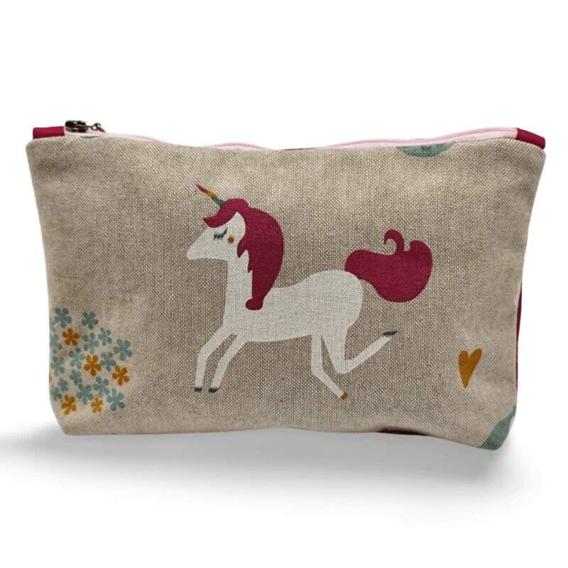 Kosmetická taštička z ekokůže a bavlny - Jednorožci