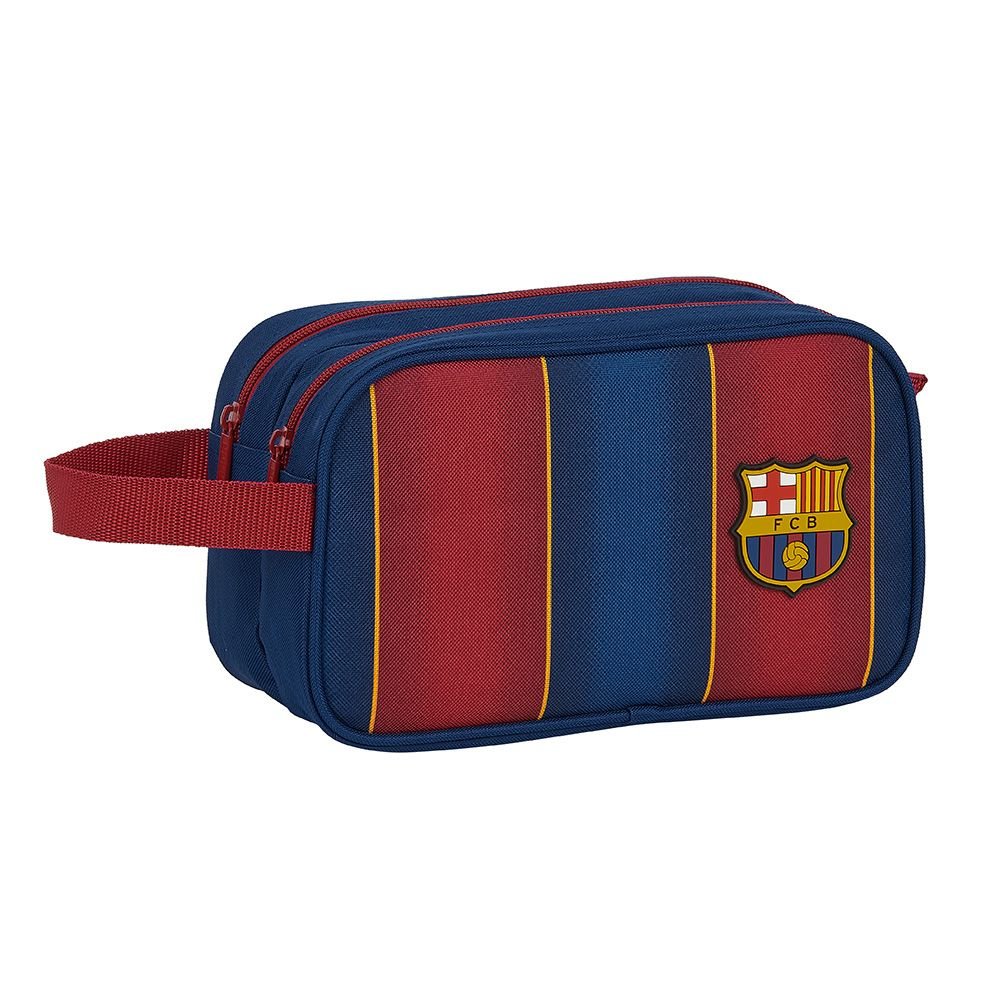 Modrý dvouprostorový školní penál s poutkem, pro snadné nošení. Pouzdro vyvedené v barvách klubu a se znakem FC Barcelona.