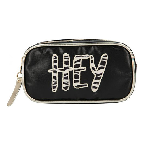 V této kosmetické taštičce si snadno vezmete svůj make-up nebo psací potřeby s sebou. Taštička má černou barvu se stříbrnými detaily a vyšitým nápisem HEY. Uzavíratelná na zip.Rozměry: 19 cm x 10 cm x 6,5 cm. prečítať celé